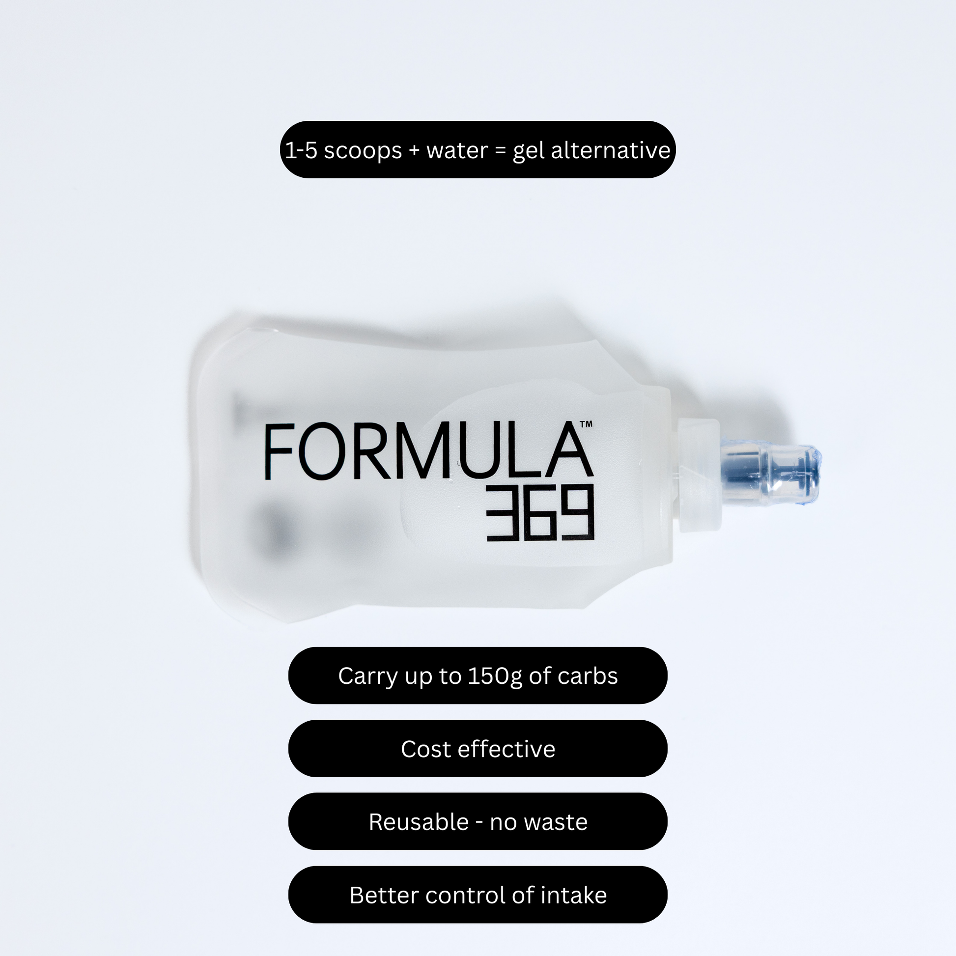 Another tool it the tool box! If you want to carry your carbs in your pocket, pack, or hand, then easily mix your Formula 369 drink mix as a concentrated solution, and fill up your flask!