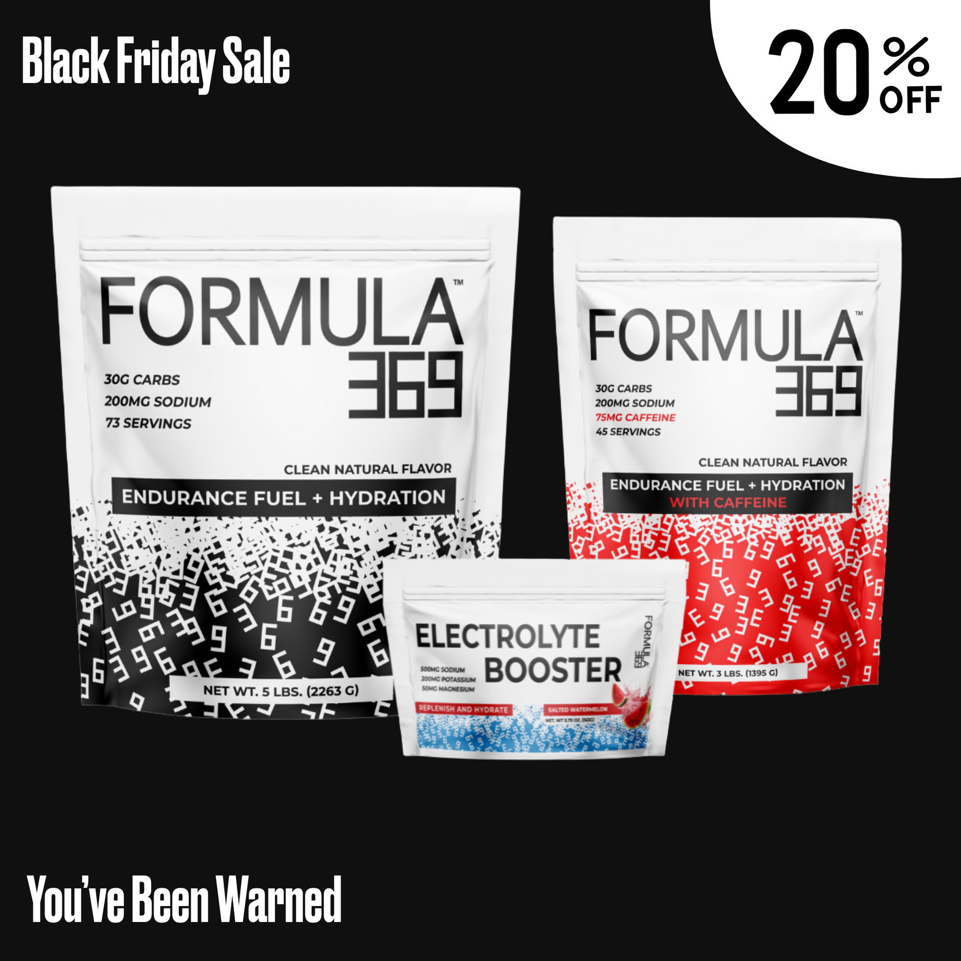 Or, for an easy endurance workout indoors, use 1 scoop of regular Formula 369 and 1 scoop of Electrolyte Booster per bottle per hour.